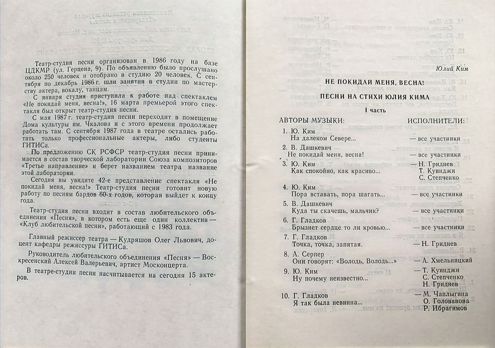 Parallel zum Studium begann ich meine Arbeit am Moskauer Musiktheater „Drittes Richting“, mit dem ich nicht nur in Moskau, sondern auch in vielen anderen Städten des Landes auftrat.